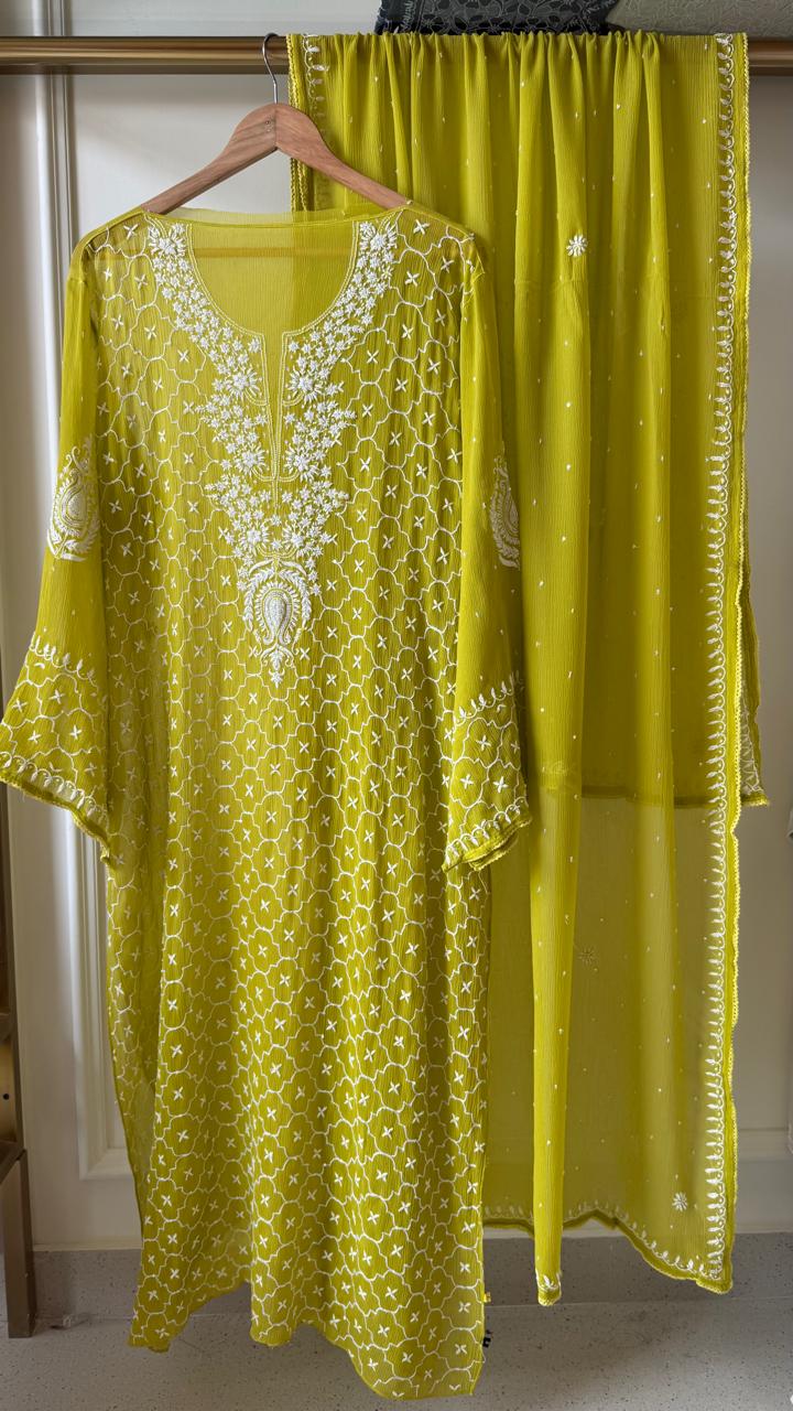 Chiffon Kurta Dupatta Set with Pearl & Katdana Work