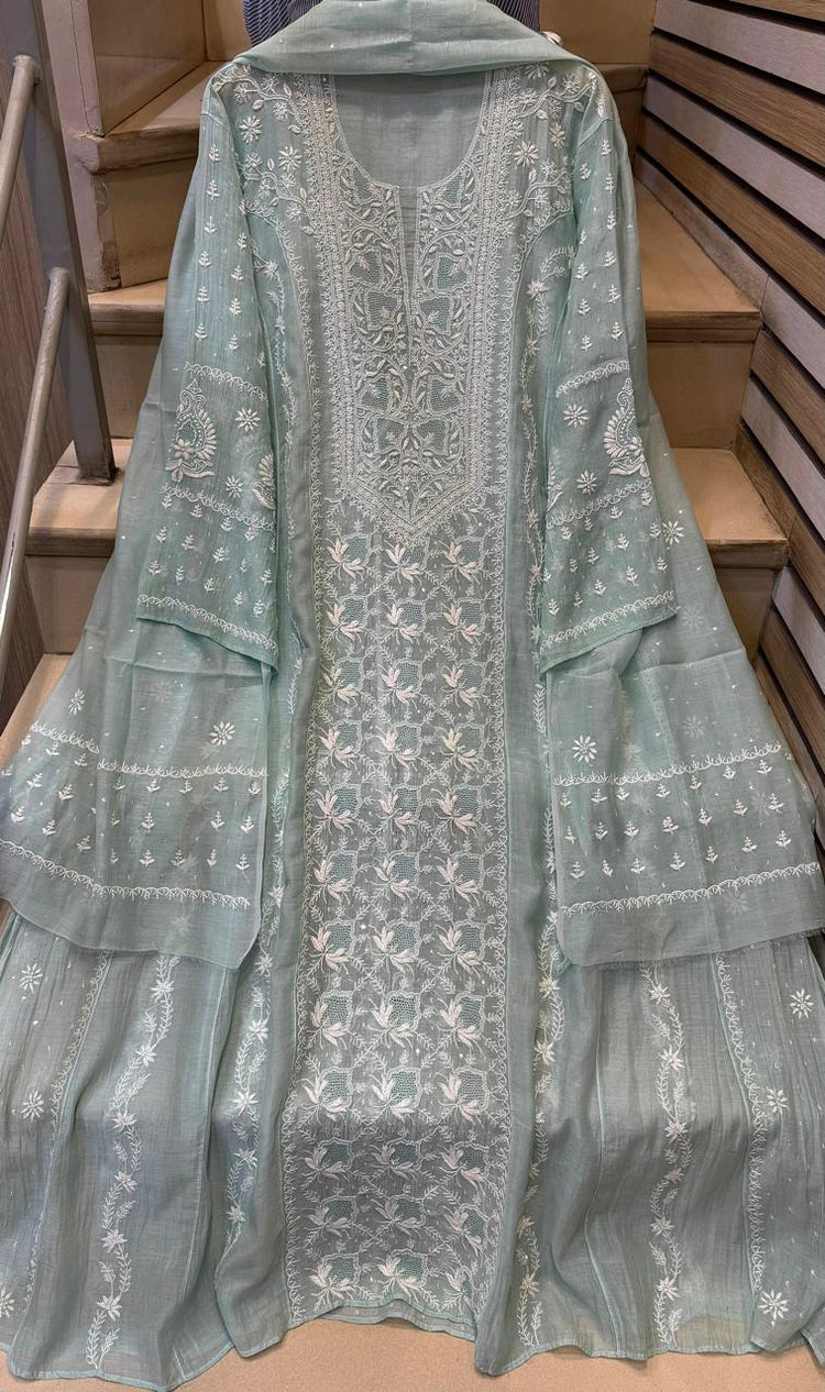 Mul Chanderi Anarkali Set with Pearl & Katdana Embroidery