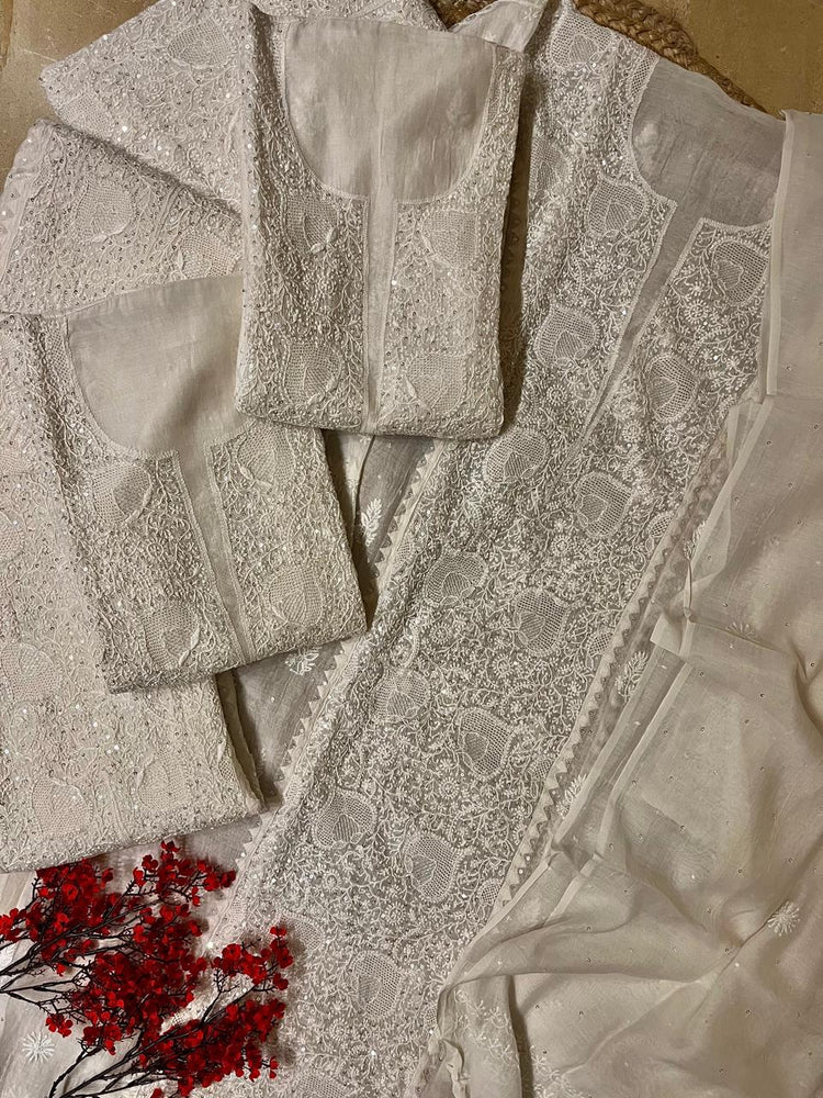 Mul Chanderi Kurta Set with Pearl & Katdana Embroidery Work