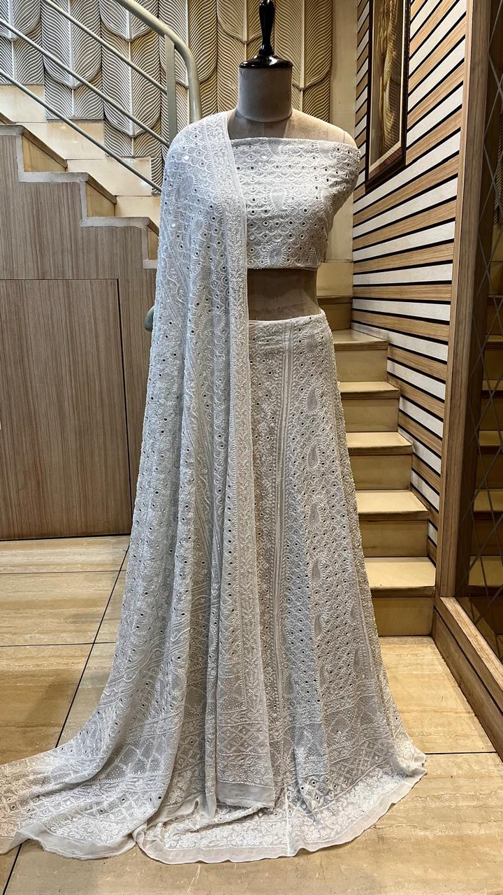 This luxurious pure georgette bridal lehenga set is a masterpiece of traditional ethnic wear for women, featuring exquisite pearl, sequin, katdana, and mirror embellishments. The rich craftsmanship and dyeable fabric make it perfect for grand weddings, receptions, and festive occasions. Designed for those who appreciate intricate detailing and couture elegance in a traditional lehenga style.