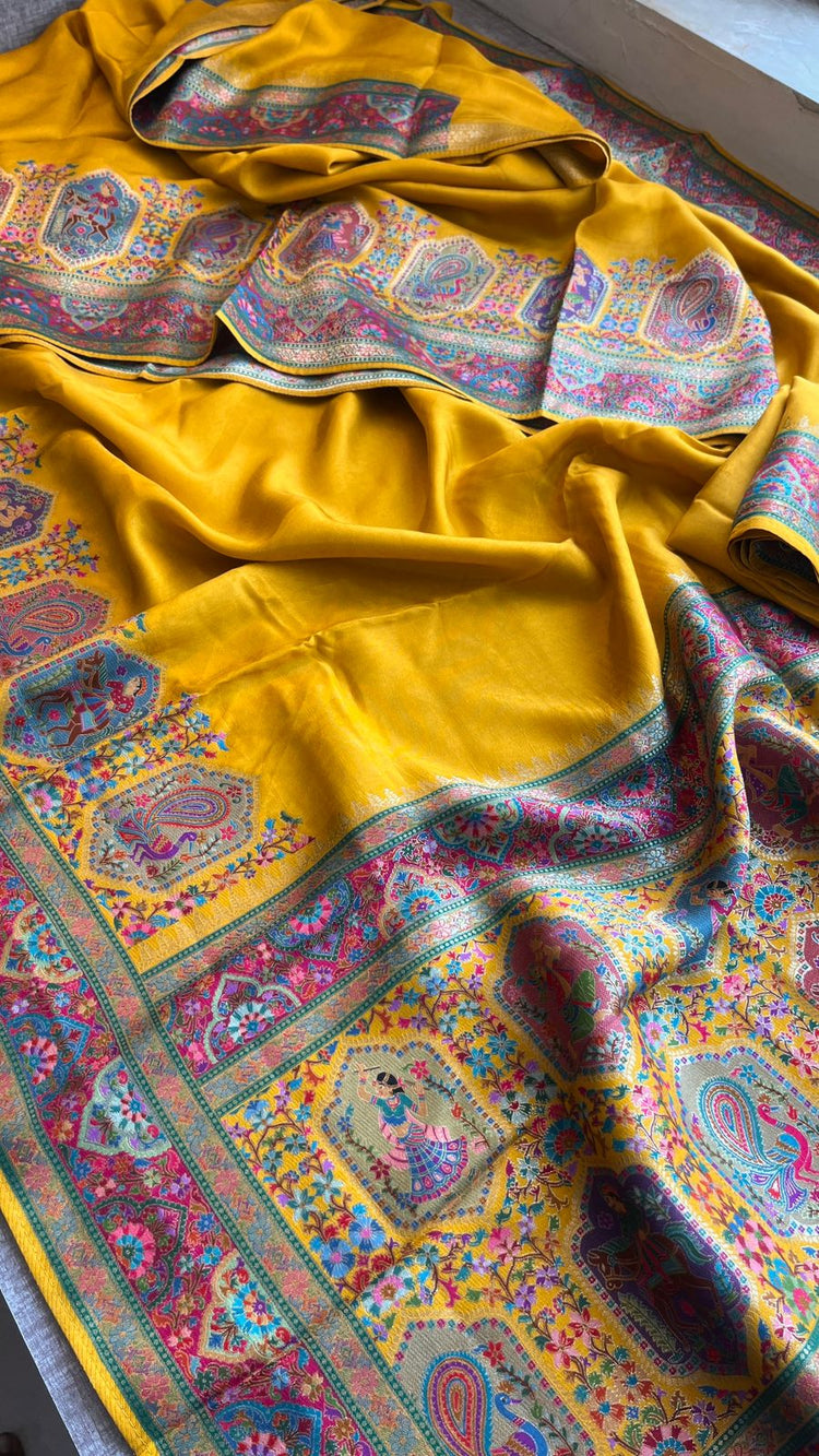 Pure Munga Tussar Silk Saree with Meena Banarasi Weaving