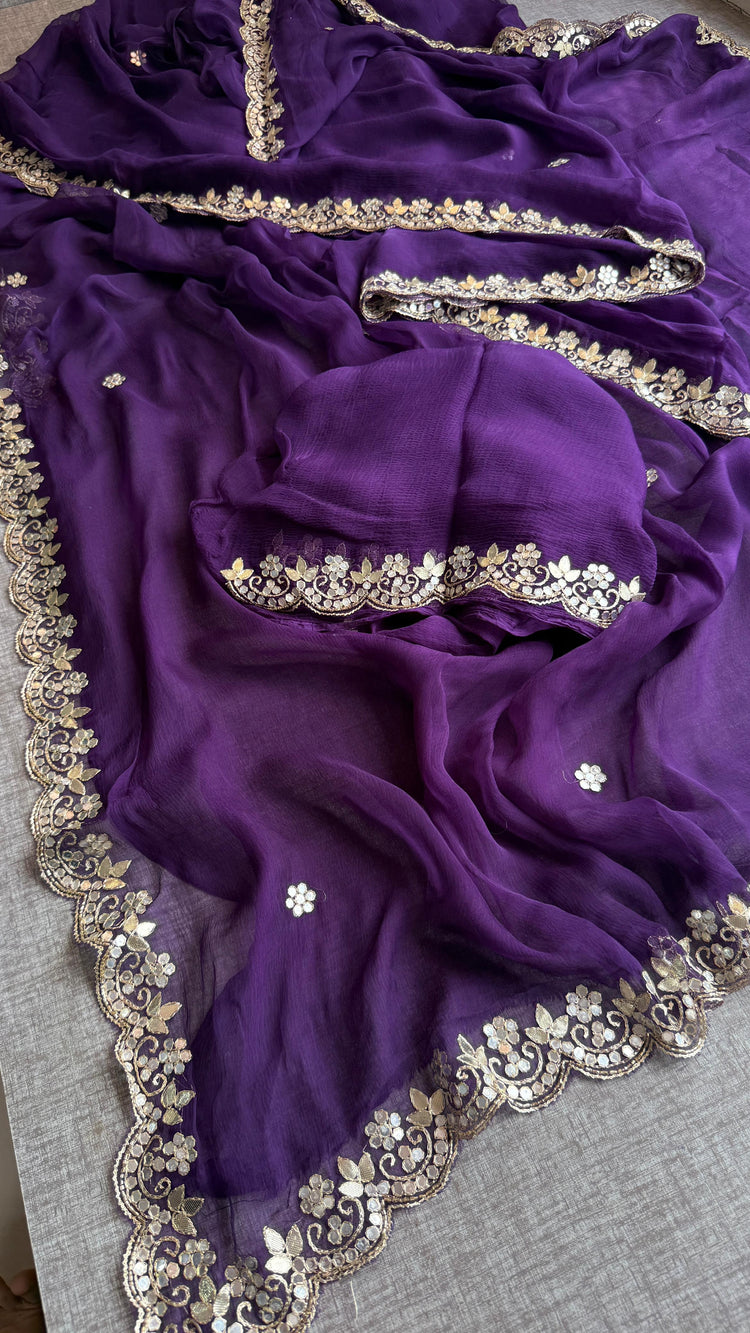 Chiffon Saree with Zardozi, Pearl & Gotapatti Highlights