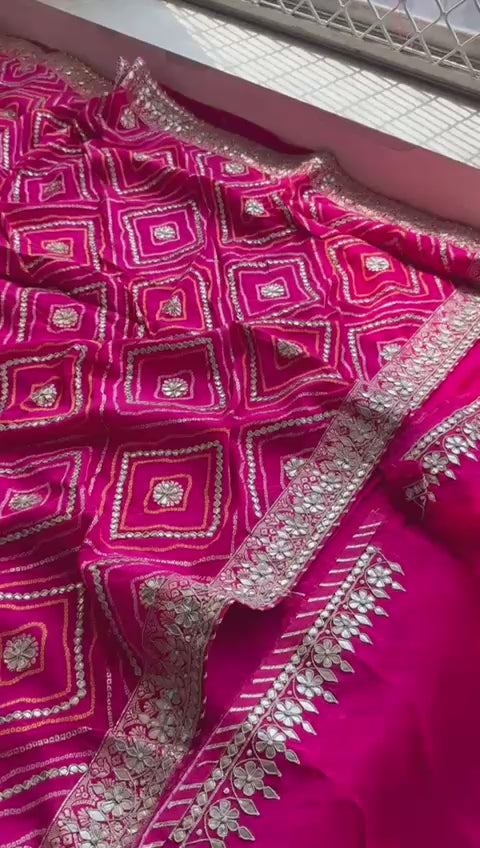 Majestic Pink Pure Munga Silk Banarasi Saree with Handcrafted Gotapatti Zardozi and Pearl Detailing