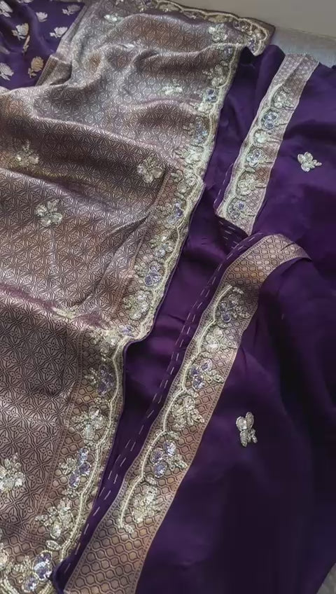Pure Munga Silk Banarasi Saree with Handcrafted Kutdana Pearl Sequins and Zarkan Embroidery