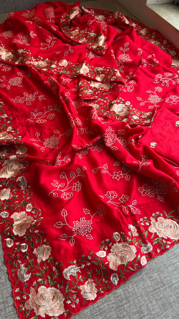 Made from 100% pure soft Munga silk, this saree is enhanced with intricate multi-thread embroidery, exuding elegance and grace. Paired with a matching pure soft Munga silk blouse, this saree is an excellent choice for festive gatherings and special occasions, offering a timeless and luxurious appeal (NM001).