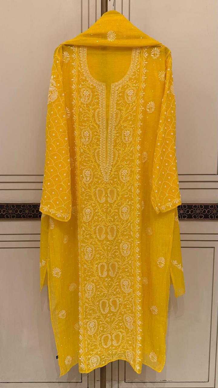 Exquisite Mul Chanderi Kurta Dupatta Set with Pearl & Sequin Detailing