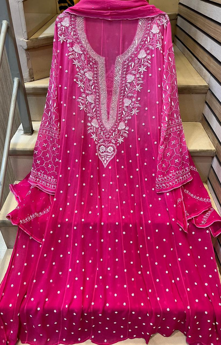 Pure Chiffon Anarkali Kurta Dupatta Set with Pearl & Katdana Embellishments