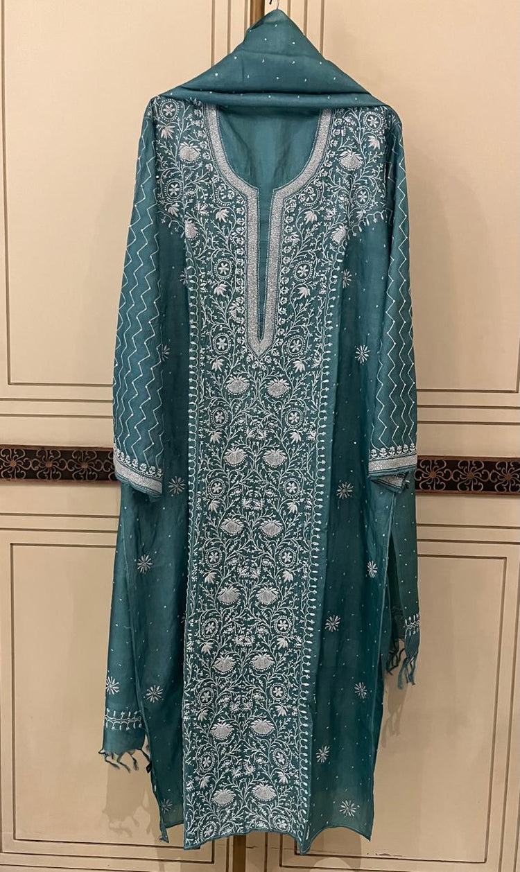 Pure Silk Kurta Dupatta Set with Pearl, Sequin & Katdana Embellishments