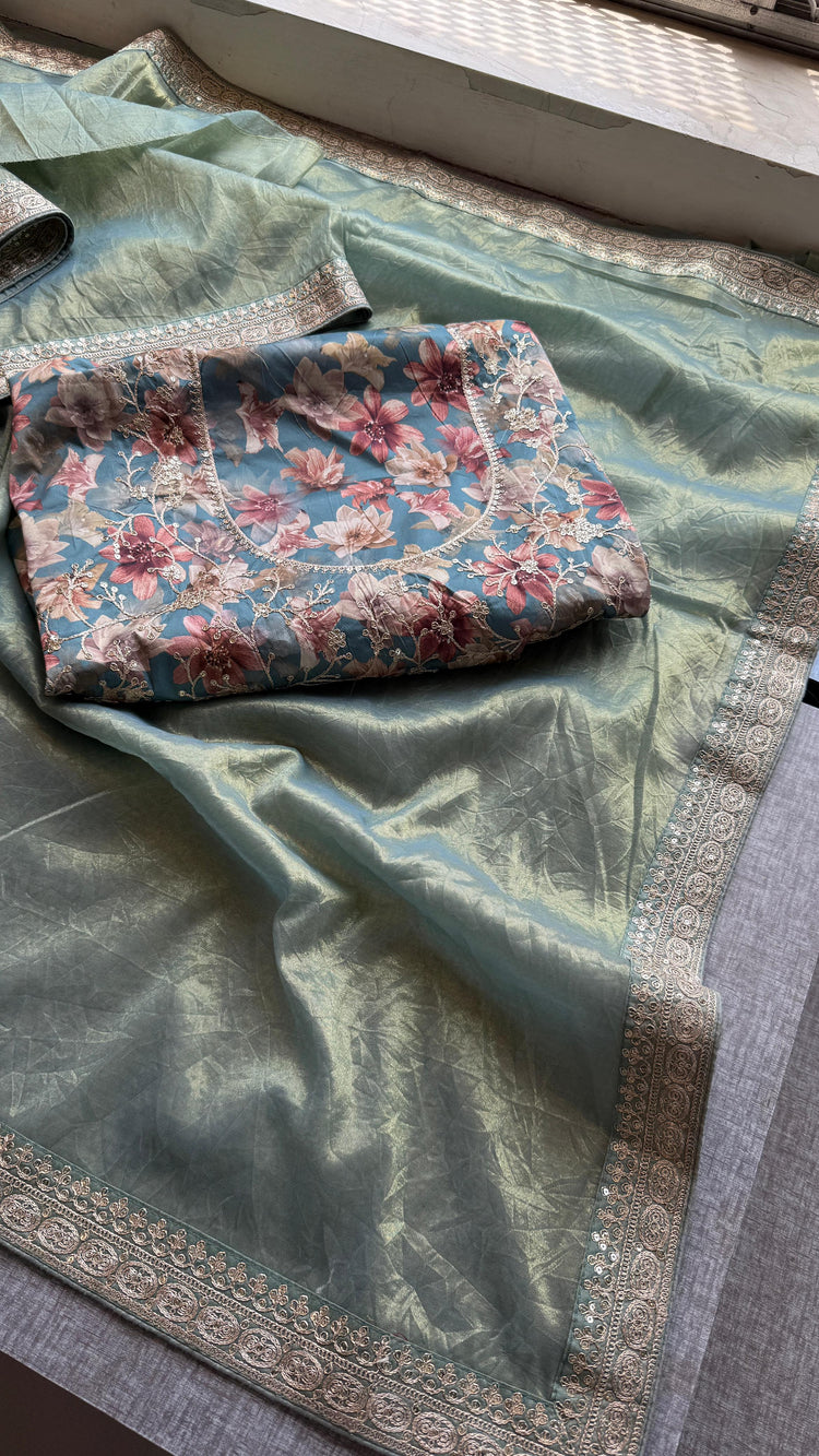 Cosmo Tissue Silk Saree with Zari & Sequins Border Detailing