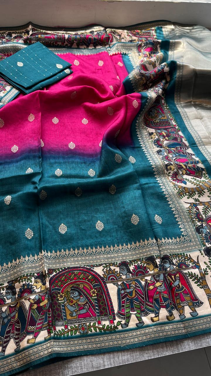 • Saree Fabric: 100% Pure Satin Crepe with Banarasi Weaving