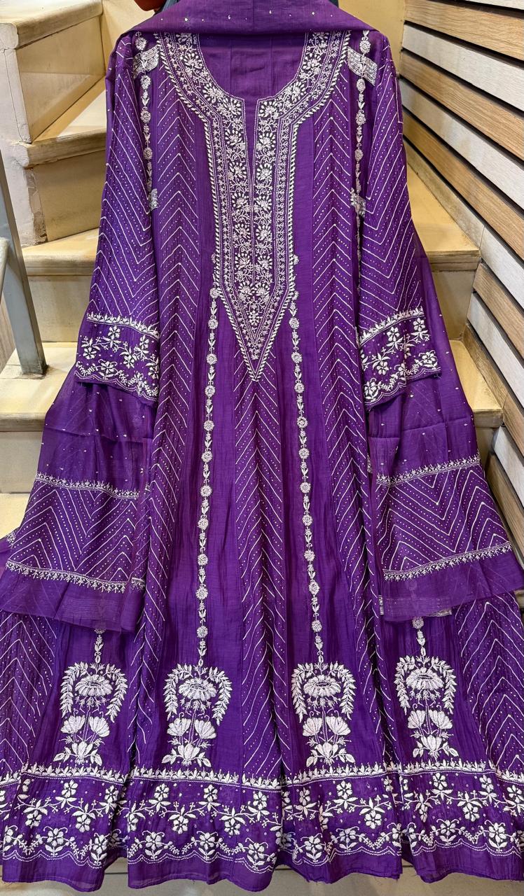 Mul Chanderi Anarkali Suit Set with Mukaish Embroidery