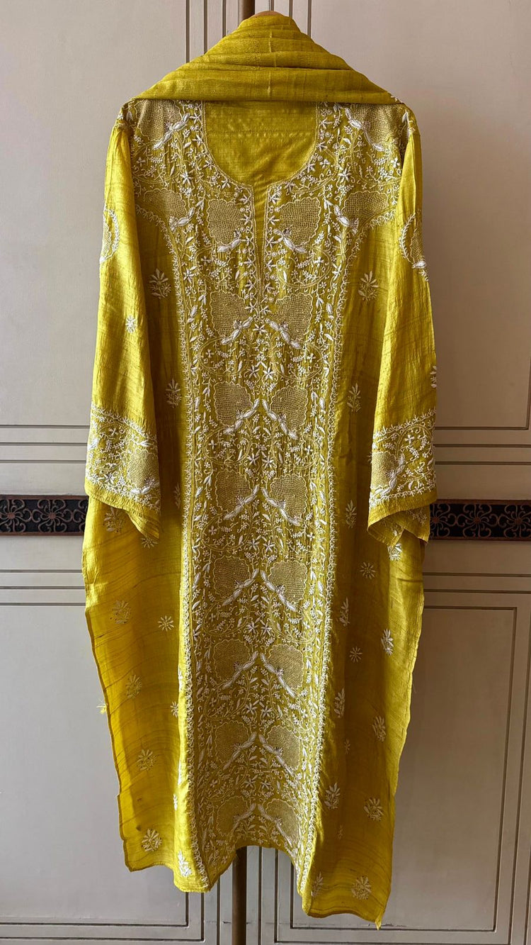 Pure Silk Kurta Dupatta Set with Hand Mukaish Embellishment